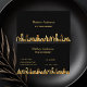 A black background, with a faux gold city skyline as decor. Personalize and add your business name and a text on front. Golden letters