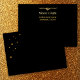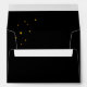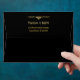 Elegant classic black wedding envelope with gold sparkles and a gold stylized ornament image on the back flap