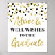 Advice and well wishes for the graduate sign for graduation party in a black and gold confetti pattern.