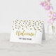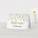 Welcome to the team card for new employees in black and gold confetti pattern.