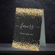 Black background. Decorated with faux gold confetti. With the text: Favors, please take one! White text.
