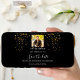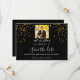 A Save the Date card for a 50th (or any age) birthday party. A black background. Decorated with golden confetti. The text: Save the Date is written with a large trendy hand lettered style script. Personalize and add a photo.