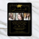 Elegant black and gold glitter graduation party invitation featuring 3 photos, modern, trendy handwritten script typography, gold glitter graduation cap or mortarboard and tiny gold star confetti. ASSISTANCE: For help with design modification or personalization, color change or transferring the design to another product, contact the designer BEFORE ORDERING via the Zazzle Chat MESSAGE tab or email makeitaboutyoustore@gmail.com.