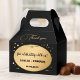 Wedding favor box featuring a stylish gold and black art deco design with sparkling gold confetti. Beautiful for a wedding and customizable for any other occasion.
