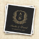 Black Gold Crest Elegant Monogram Wedding Napkins