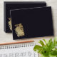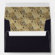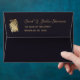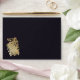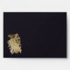 This elegant religious envelope, recommended for a religious confirmation or first holy communion, is decorated with a gold cross over a religious book (maybe a bible) surrounded by vines, bot on the front (left down corner) and on the back flap, before the return address printed also with golden letters. the background is dark, {almost )black. The names from the return address printed on the flap are written in an elegant calligraphy. Inside there is a gold pattern based on the same gold cross and bible decoration.