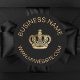 Black colored background. Decorated with a faux gold crown. You can replace the crown with your logo. Personalize and add your name and website url