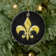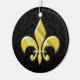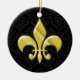 Black/Gold Damask Fleur de Lis Ceramic Ornament