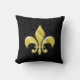 Black/Gold Damask Fleur de Lis Throw Pillow