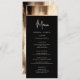 Delight your guests with our tasteful wedding menu. Chic minimalist typography stands out on a dark watercolor background enhanced with faux gold accents. The black overlay tastefully showcases your delectable menu options.