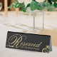 Elegant black and gold wedding reserved table tent with shiny diamond ring. Personalize it with your event details.
