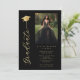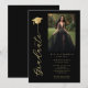 Sophisticated Dramatic Black and Faux Gold Effect Graduation Invitation with Photo and Graduate Cap Calligraphy.