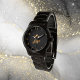 A stylish, classic black background. Personalize and add your business, company logo. Golden clock numbers.