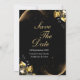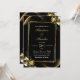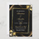 Design features a dramatic black background enhanced with luxurious gold accents and modern geometric framing, paired with elegant metallic floral details for a sophisticated look. This black and gold floral wedding invitation creates a timeless and upscale aesthetic, perfect for formal weddings, evening events, and glamorous celebrations. Personalize to create stunning custom invitations for your special day.
