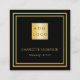 A classic black background and faux gold frames. Personalize and add your business logo, name and text on front.