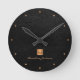 Luxury monogrammed round wall clock with a black leather look background and a faux gold copper metallic brushed square with elegant script signature name and monogram initials. ++++++++++++++ Easy to personalize with your business or personal initials and name. +++++++++++++ Could be an elegant personalized gift for business or any other occasion, personal or office workspace decor.