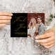 Black Gold Elegant Script Modern Photo Wedding Thank You Card