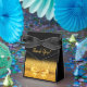 An elegant and glamorous birthday or anniversary favor box. Classic black and golden sparkle backdrop with a faux gold ribbon and bow. With the text: Thank You!Golden letters.