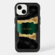 Black, faux gold, and emerald green, agate, marble stone print as background Personalize and add your name. The name is written with a modern hand lettered style script.