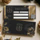 Plain white envelopes are included with paper invitations and will come to fit the invitation size you select. If you don’t need the envelopes, you may choose to not receive them by selecting the dropdown below "Envelopes" and choosing "None." If you’d like to have a design on your envelopes, you can browse all of these available envelopes to find the design that complements your Black Gold Floral Boarding Plane Ticket Wedding Invitation.