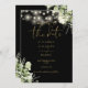 This elegant black and gold greenery floral string lights save-the-date invitation can be personalized with your information in chic typography with your wedding website QR code and details on the reverse. Designed by Thisisnotme©