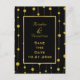 Black, gold foil beads modern wedding Save the Date postcard featuring a pattern of string with gold foil balls with metallic shine that look like beads on rope on black background. Your text is in a golden frame. This elegant and stylish wedding template design is fully customizable and is perfect for a contemporary wedding. Note that THERE IS NOT REAL GOLD FOIL JUST PRINTED IMAGES.