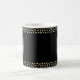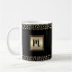 A faux gold foil square with a black script monogram initial, framed with horizontal gold oblong dot pattern bands on black, highlight this chic, girly, modern monogramed coffee mug. Makes a fun and stylish statement every time you enjoy your morning java. A great gift for a friend, as well as yourself!