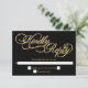 A formal, elegant black wedding RSVP with faux gold calligraphy script.