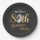Black Gold Foil Custom Photo 80th Birthday Paper Plates