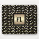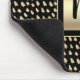 A faux gold foil square with a black script monogram initial overlaying a luxury gold oblong dots pattern on black, highlights this chic, girly, modern monogramed mousepad. Makes a fun and stylish statement every time you use it. A great addition to your workspace, as well as a wonderful gift for a friend!