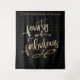 Golden glitter Forty and Fabulous script lettering against black with gold confetti background and modern typography makes this Photo Booth Backdrop perfect for 40th Birthday party. Can be personalized with a custom text message.