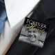 Elegant funeral memorial button featuring a picture of your lost loved one, the text "forever in our hearts", and their name.