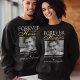 Elegant funeral memorial sweatshirt featuring a picture of your lost loved one, the text "forever in our hearts", their name, birth/death dates, a faux gold foil heart, and the remembrance saying "gone but not forgotten".