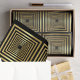 Decorative, elegant and baroque black and gold tissue paper featuring shiny gold squares intricately linked to produce a captivating 3D illusion.