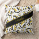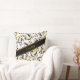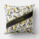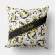 This cute volleyball team colors throw pillow for girls features a pattern of varied size stylized black, gold and white volleyballs turned every which way overlying a volleyball net detail graphic - the volleyballs' black and gold panels are blended with an artsy, girly floral pattern - personalize her name in a sophisticated handwritten font on a bold, angled, full width black color strip - background and name strip colors are customizable - by katz_d_zynes