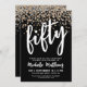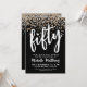 Modern Gradient Glitter 50th Birthday Party Invitation. Celebrate the big 5-0 with this sleek and stylish design. The front and back showcase a gradient of faux gold and silver glitter confetti at the top, fading into a simple black background for the bottom half. "Fifty" stands out in bold script at the top, paired with a mix of elegant script and classic serif fonts in crisp white for the event details. The look is modern, chic, and perfect for honoring 50 years young with sophistication. Colors for the fonts and background can be customized to suit your theme.