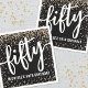 Personalized Fifty 50th Birthday Paper Party Napkins. These celebratory napkins feature the word "Fifty" big across the center in bold script, with "Name's 50th Birthday" displayed at the bottom in a clean sans serif font. Faux gold glitter sparkle confetti around the edges. Designed in a simple yet stylish black and white theme, this minimalist layout keeps the focus on the milestone while adding a touch of elegance to your party. Fully customizable, you can change the font and background colors to match any birthday style or theme.