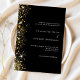 A modern, elegant wedding invitation. Black background decorated with faux gold glitter sparkles. Personalize and add your names and wedding details. White colored letters.