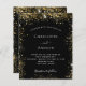 A modern, elegant wedding invitation. Black background decorated with faux gold glitter sparkles. Personalize and add your names and wedding details. White colored letters.