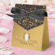 Elegant black, gold glitter and diamond accent favor boxes suitable for many special occasions- Front flap is decorated with faux gold glitter and black background. Rest of favor box resembles faux gold metallic color. Bottom front has stylish, faux diamond gemstones high heel shoes framed in faux metallic gold scrolls. Reads 'Thank You' in elegant, black lettering below. Both wording and letter style and/or color may be changed. For example, instead of 'Thank You', change to personalized name and/or name of event. Beautiful black and gold favor boxes for guests. Coordinates with glam gold party, girly birthday themes, elegant black and gold party colors, and glitter party celebrations. Perfect for elegant bridal shower, teen girl's birthday, woman's elegant birthday party, gold bridal shower, Fabulous 50 birthday party for women, gold Sweet 16 birthday, etc. We have matching gold glitter high heels invitations and Fabulous 50th birthday invitations in our Zazzle.com/angela65 shop, as well as other black and gold party supplies.