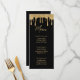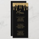 Black and gold glitter drip wedding reception menu. Personalize it with your meal list.