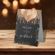 Black background. Decorated with dark faux gold glitter drips, dust and golden balloons. With the text: Please sign the guest book.