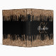 A classic black background. Faux gold glitter drips, paint dripping look as decoration. Personalize and add a name and monogram initials. Add your text on the spine. The name is written with a modern hand lettered style script. Perfect for school homework, work, office, back to school.