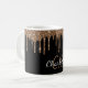 Black gold glitter drips monogram script elegant coffee mug