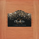 A black background decorated with faux gold glitter dust. Personalize and add a name, your monogram initials and a text.