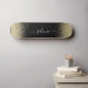 custom monogram first name in a fancy signature sytle on black gold glitter skateboard.