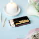 Two tone color block black and gold glitter guitar matchbox matches for a wedding favor. Personalize it by adding the bride and groom's names and their wedding anniversary date. Great for music lovers or guitarists.
