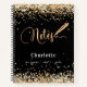 A chic black background. With the text: Notes and decorated with a feather pen and faux gold glitter, sparkles. Personalize and add a name and text (or delete)
