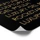 This large gold and black contemporary, trendy, salon price list wall poster template is set up and ready for you to overwrite with all your own salon menu services & prices. You can simply do it by typing over the example text in the boxes above right or you can press the 'customize it' button to go to the more detailed editing area where you can move and change things if needed. (just remember to double check all your changes and spelling because what you change is what will print).