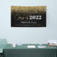black gold glitter script class of graduation party banner design. Modern gold and glitter effect and on trend bold typography and script text. Part of a collection.